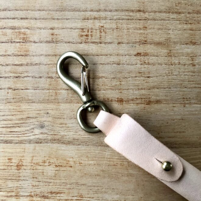 いつもの通り、金具はすべて真鍮(ブラス)素材なので、本体のレザーとともに経年変化を愉しんでいただけますよ。