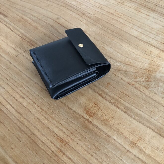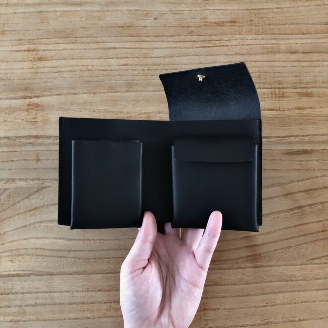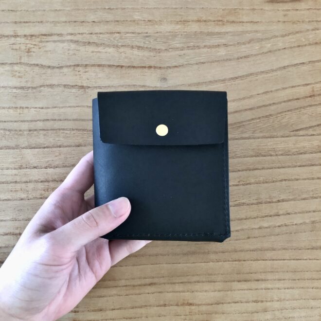 最初は全体がふっくらとした見た目ですが、使うことで革の折癖が馴染み、さらに薄いお財布が完成します。
