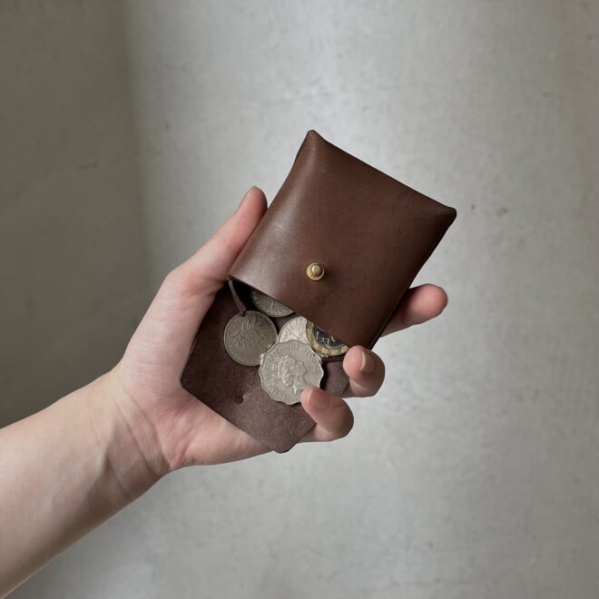 ひと部屋にフラップがついただけの、ミニマルなレザーケースができました。