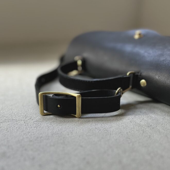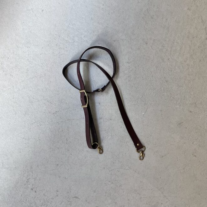 今回は当店のアイテムだけでなく、お手持ちの鞄にも応用できる余白があるものなので、ひと癖あるショルダーストラップをお探しだった方にもお選びいただければと思います。