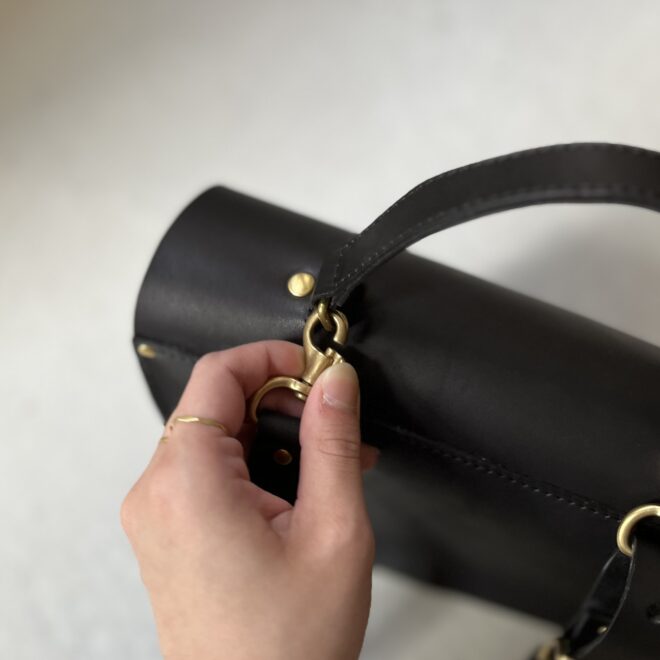 ハンドバッグ本体側に追加で金具が必要になると一度お持ちのハンドバッグをお預かりして加工しなければいけなくなりますが、今回はそういった対応なしで、ショルダーストラップさえ手元に来ればすぐに使えるようにしました。