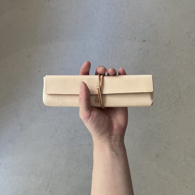 ペンケースと銘打ったひと品ですが、眼鏡ケースやコスメポーチなど、ライフスタイルに合わせてマルチに活用できるレザーケースです。