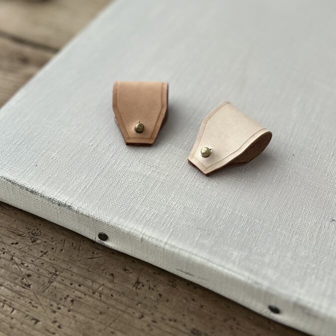 真鍮金具もサンプルは独特のくすみでアンティークのような雰囲気に。革と金具、両方が表情を変えるので作品全体で経年変化をお愉しみいただけます。