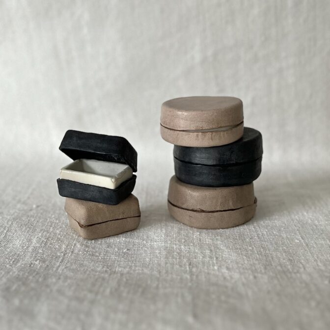 円形は直径5cmほど、角形の方は2×3cmほどの小さな小さな箱です。