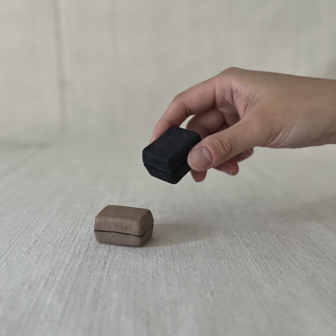 円形は直径5cmほど、角形の方は2×3cmほどの小さな小さな箱です。