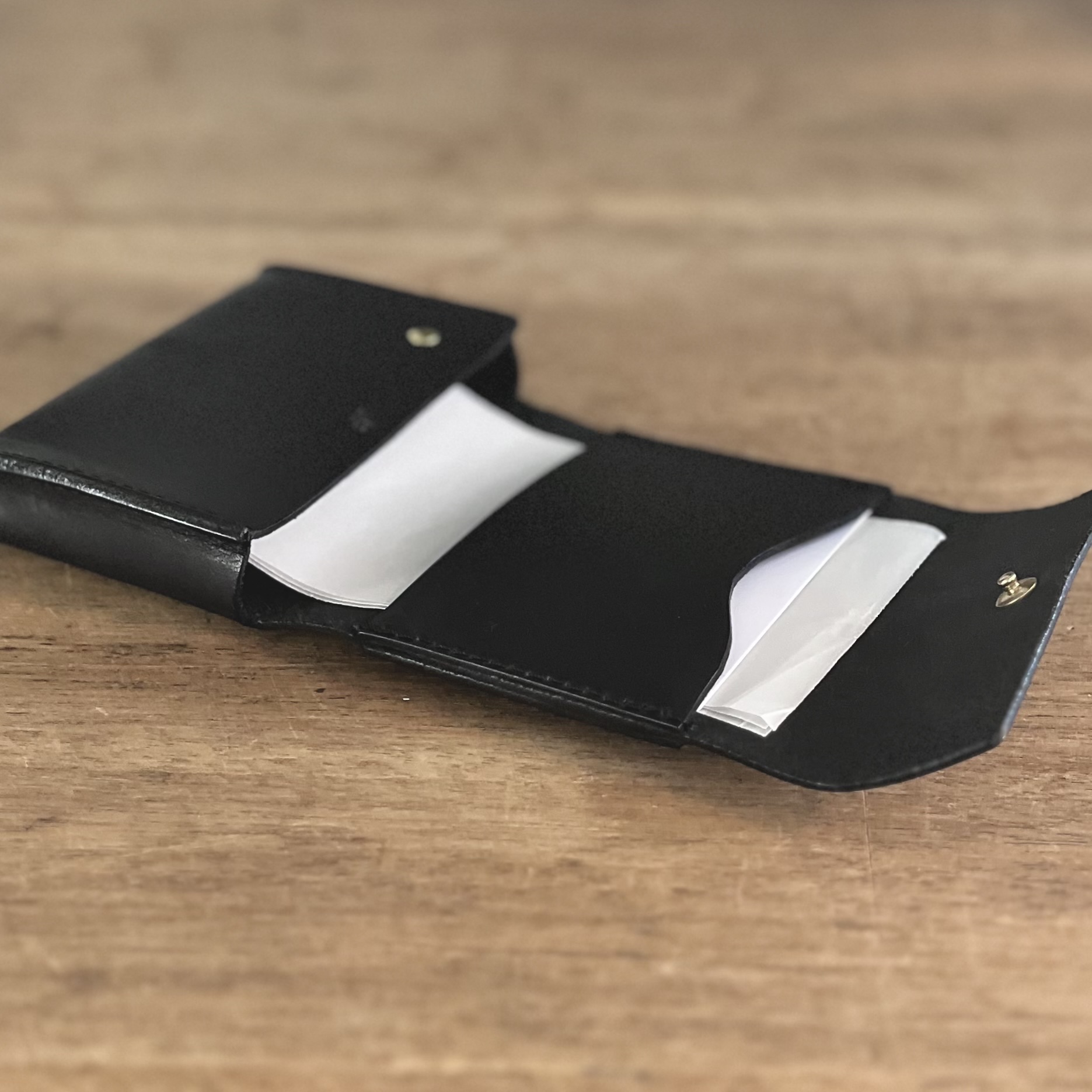 カードは2辺だけのステッチでもしっかりとホールドされ、かつフタをしっかり閉める構造なので、落とす心配はありません。