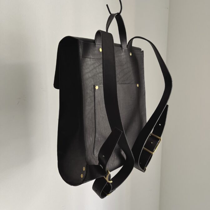 一見シンプルで使いやすいレザーリュックは、ディテールで個性を持たせて。