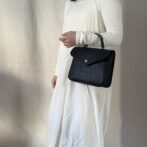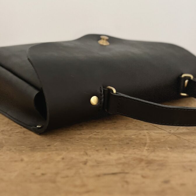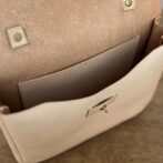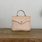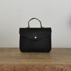 かっちりしたフォルムながらフラップの曲線と決めすぎない作りが、セミフォーマルにも普段使いにも使える万能なハンドバッグ。