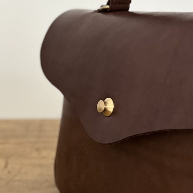 全体はかっちりスクエア型ですが、前面からステッチが見えない仕様にすることで、ころんとはらんだラインをつくり、フォルムのバランスを取りました。