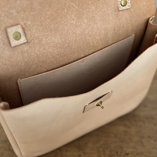キナリは染料を一切使わずに仕上げられた、いわゆる“生成り”。革本来の素に近い色味です。最も革らしく、経年による色艶の変化を感じていただけます。