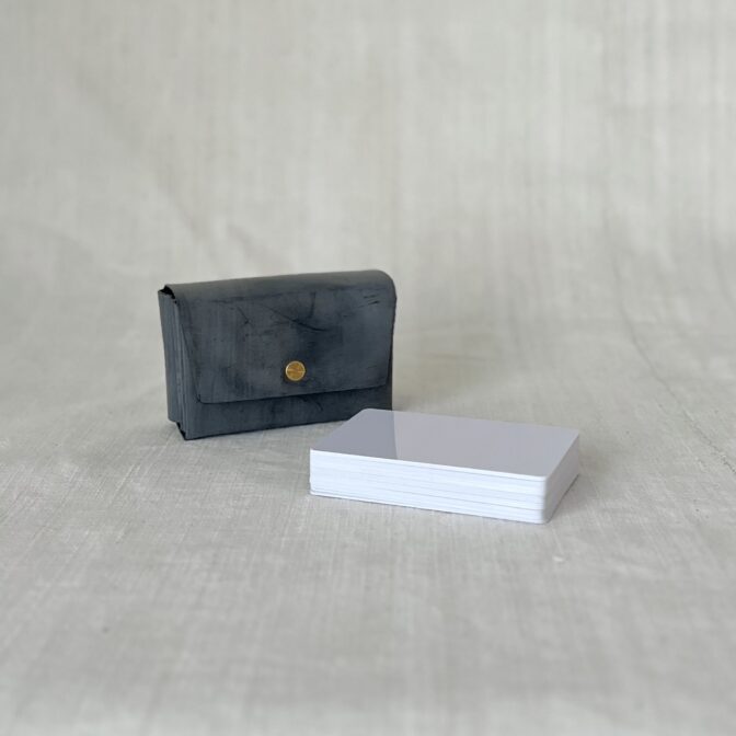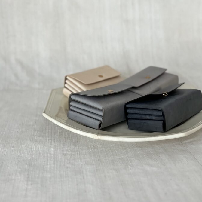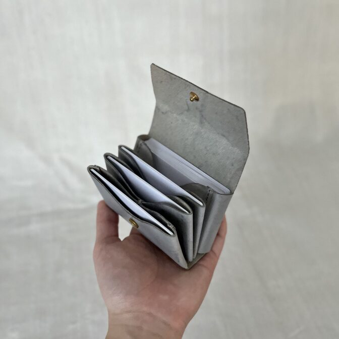 横から見るとマチの重なりがそう見えることから、millefeuille(ミルフィーユ)の名を冠したカードケース。