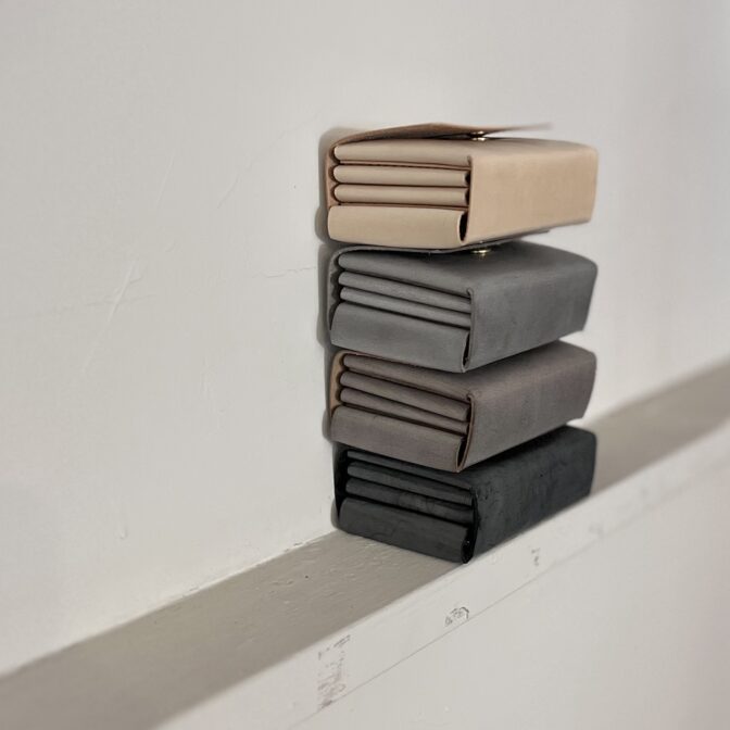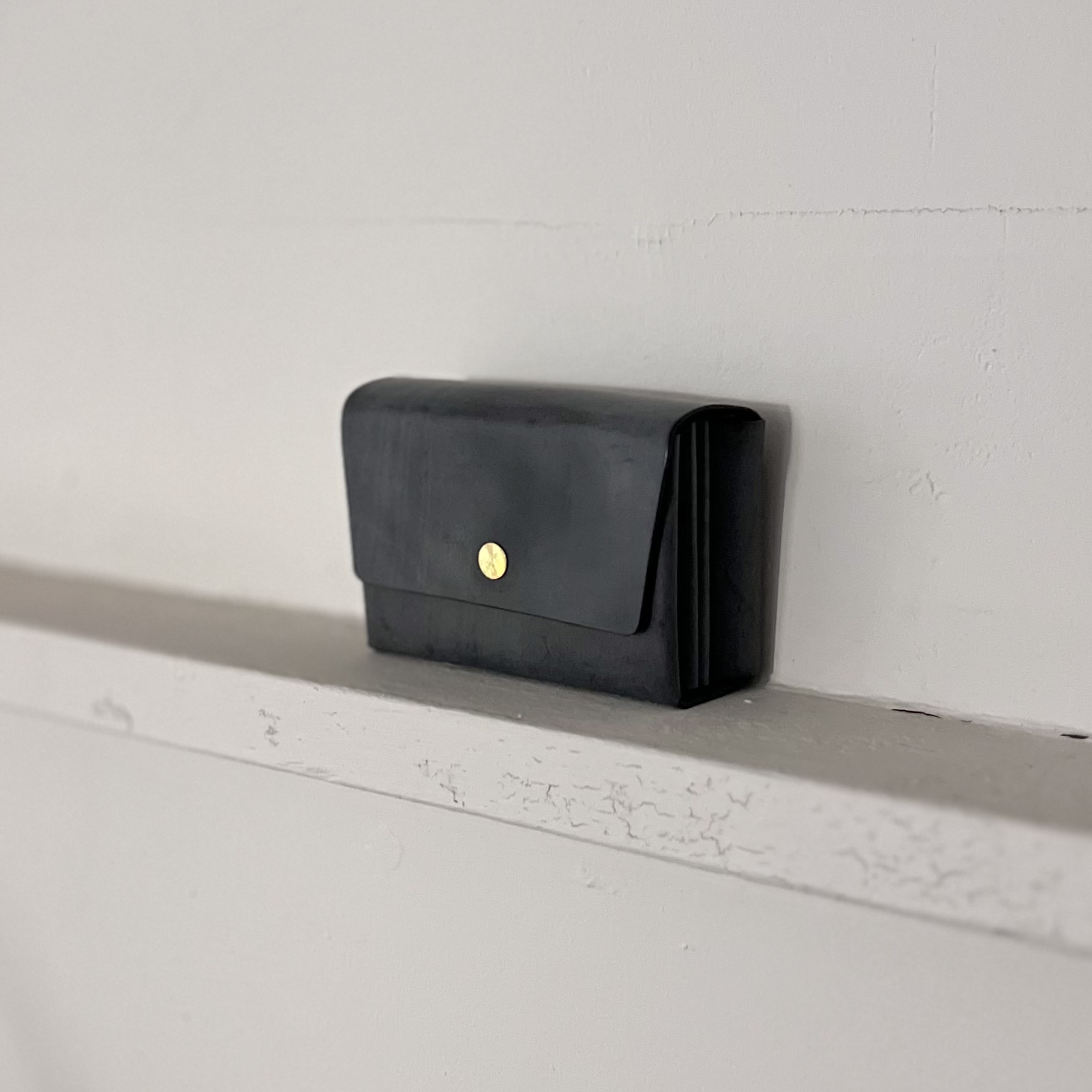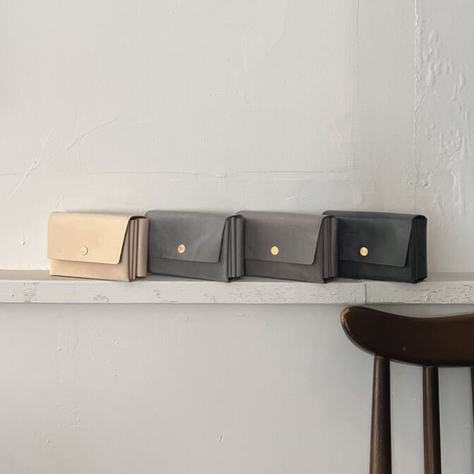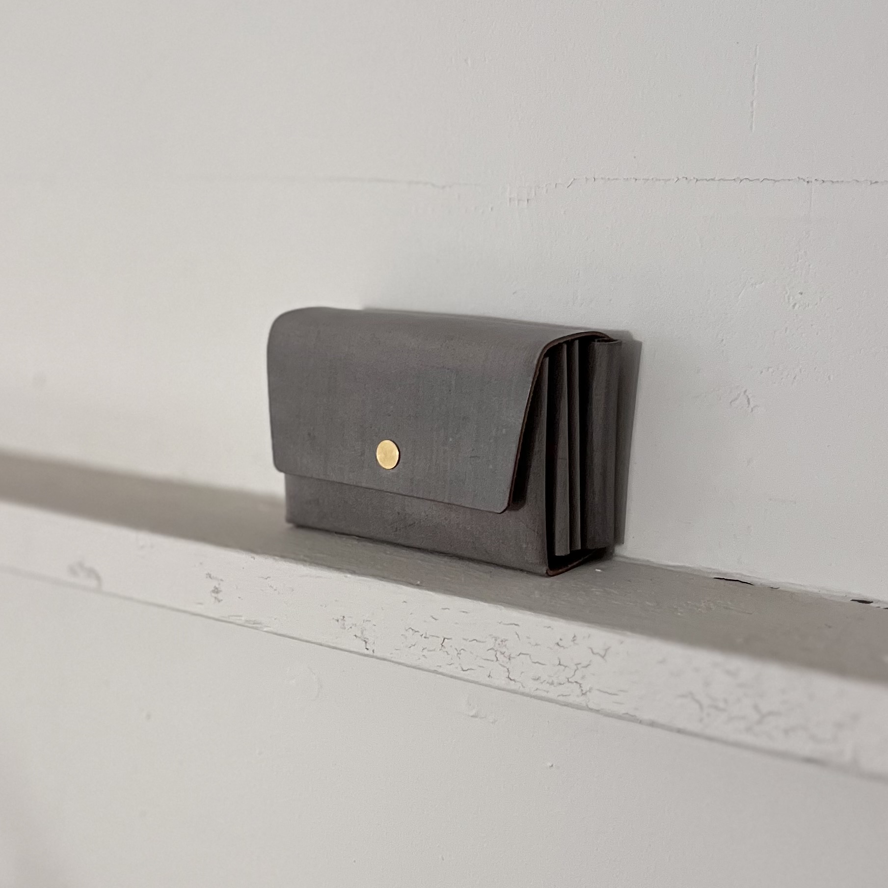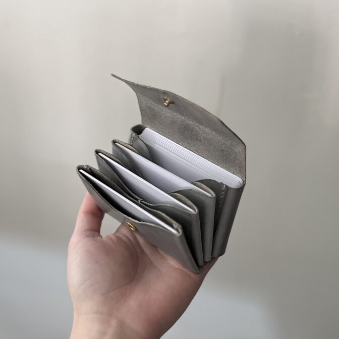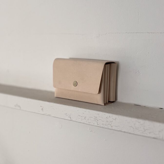 横から見るとマチの重なりがそう見えることから、millefeuille(ミルフィーユ)の名を冠したカードケース。