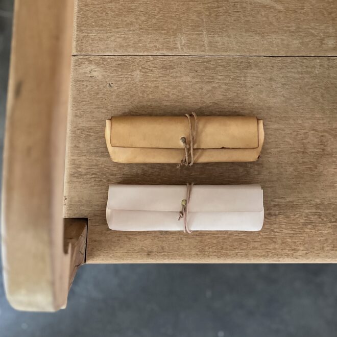 キナリは染料を一切使わずに仕上げられた、いわゆる“生成り”。革本来の素に近い色味です。最も革らしく、経年による色艶の変化を感じていただけます。