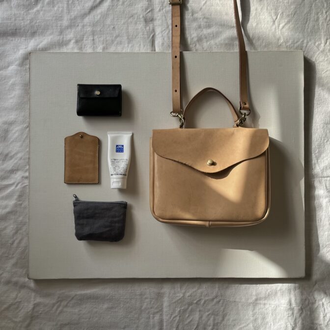 キナリは染料を一切使わずに仕上げられた、いわゆる“生成り”。革本来の素に近い色味です。最も革らしく、経年による色艶の変化を感じていただけます。