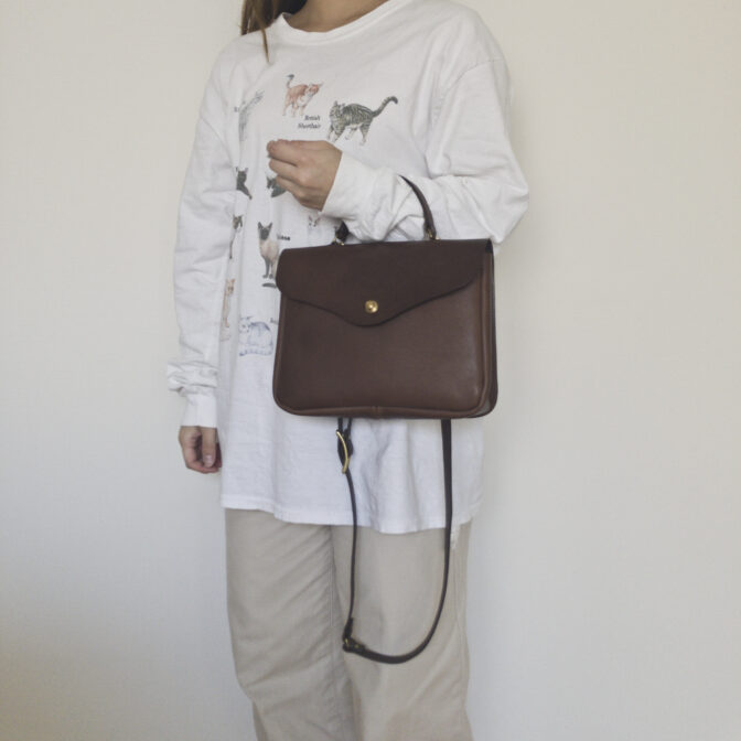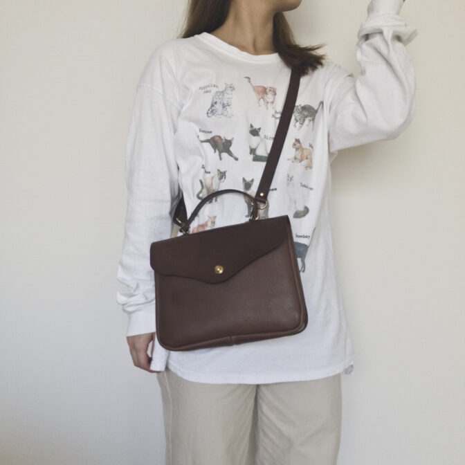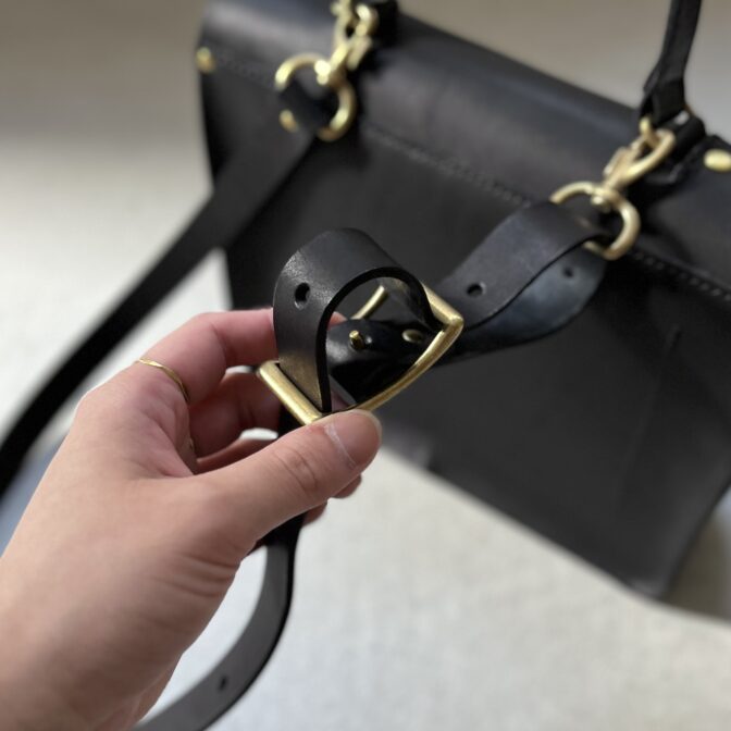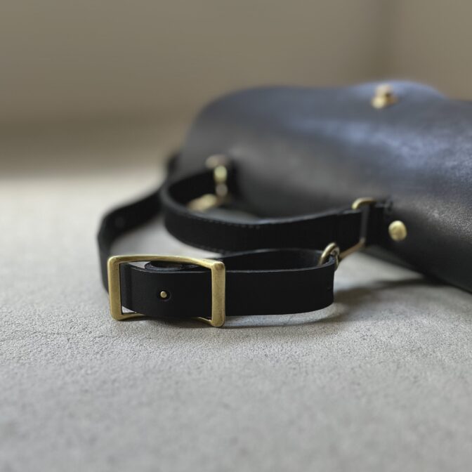 随所に散りばめられた真鍮金具と一枚革の贅沢な組み合わせで、ショルダーストラップ1つでも愛着が湧く作品になりました。