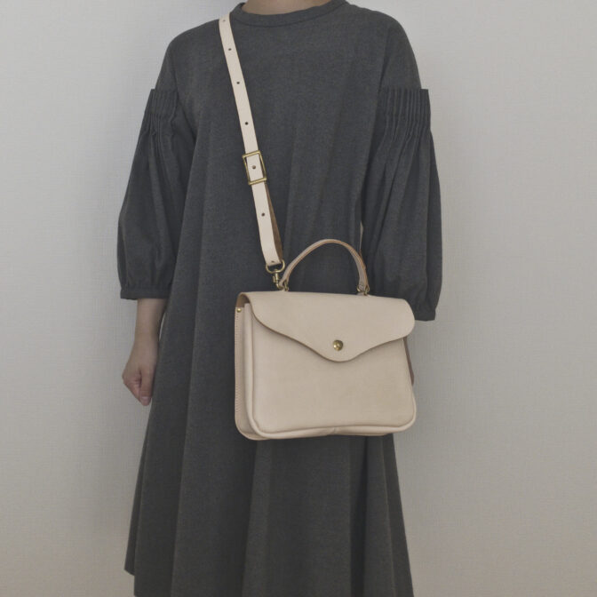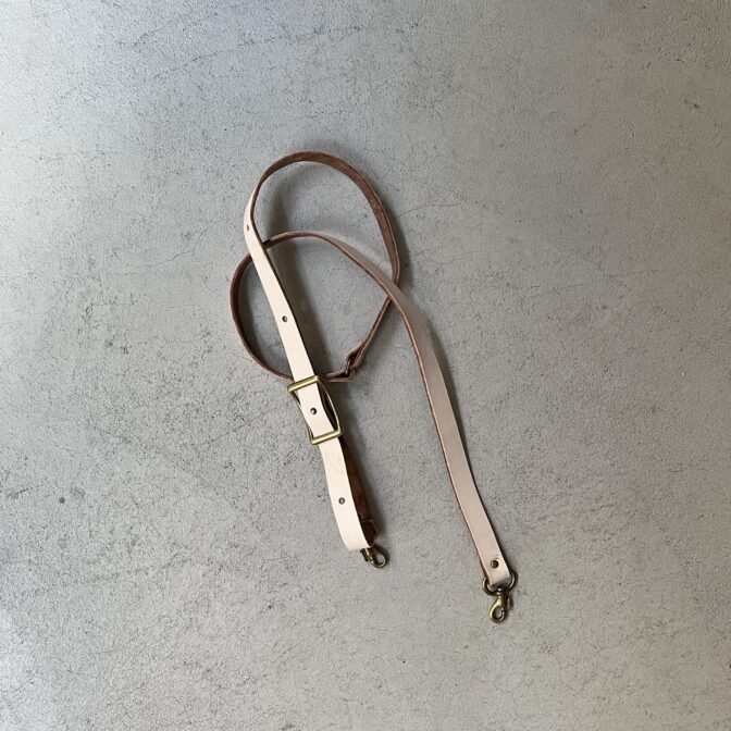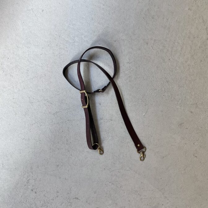 当店のGerman hook handbagを斜めがけで使いたい、というお客さまの声から生まれた、一枚革のショルダーストラップです。