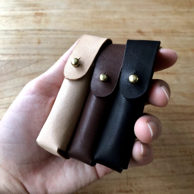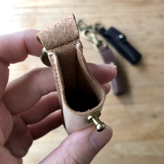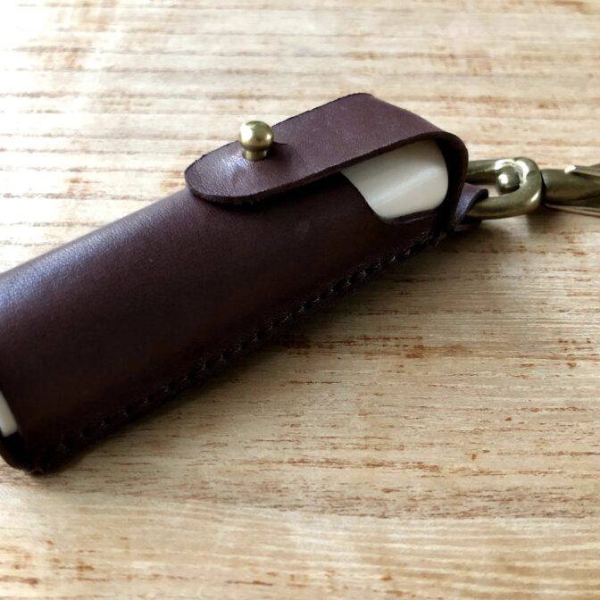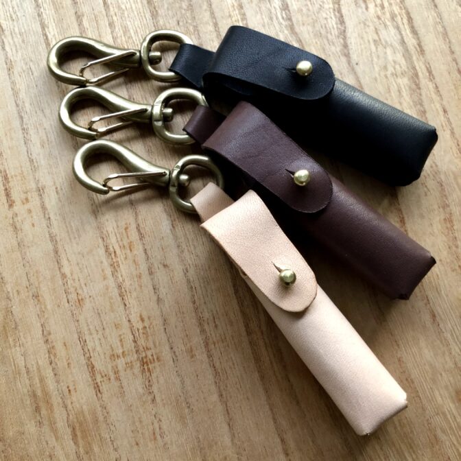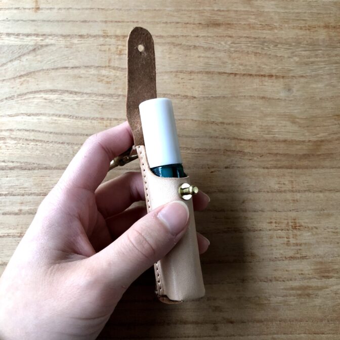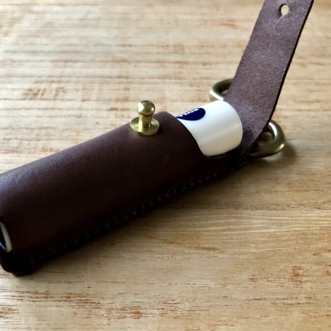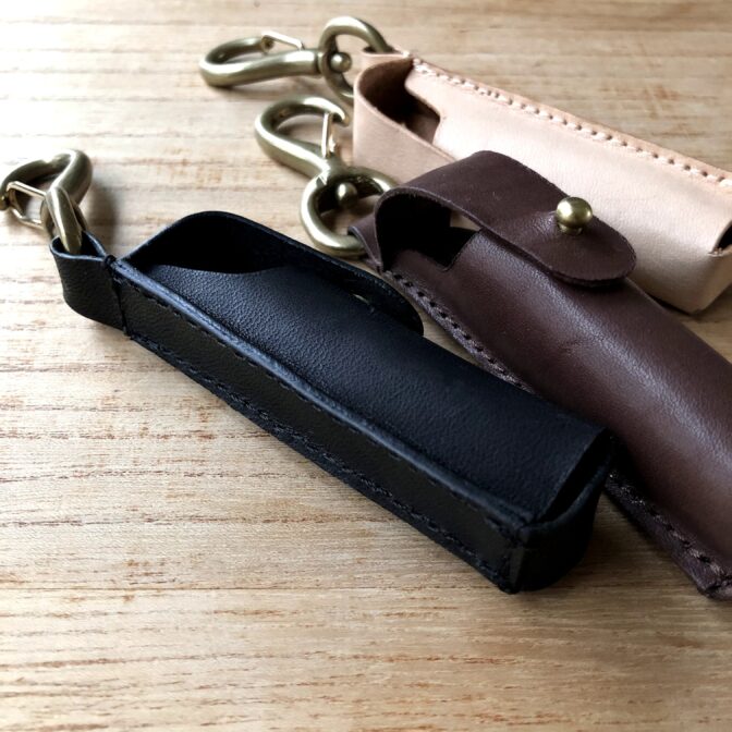 ※長さ7.7cmほどのものになるとフタが少しキツくなりますが、閉められないことはありません。使い込むうちに、多少革が伸びて馴染んできます。