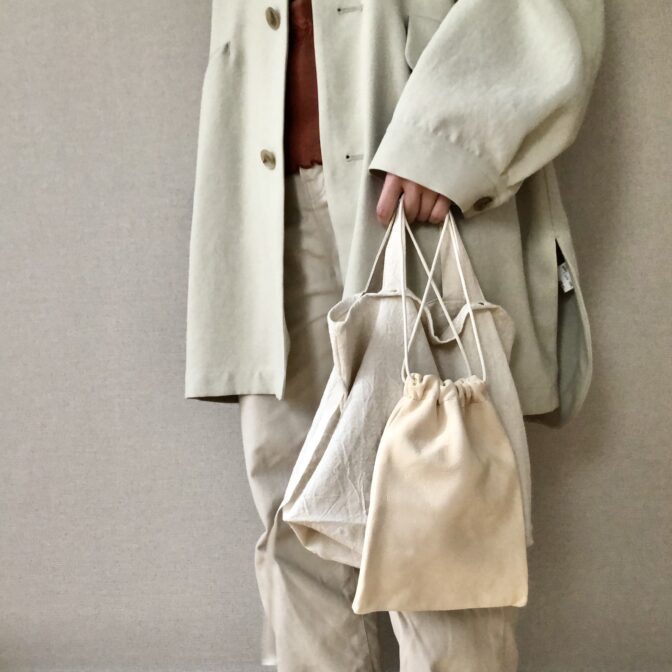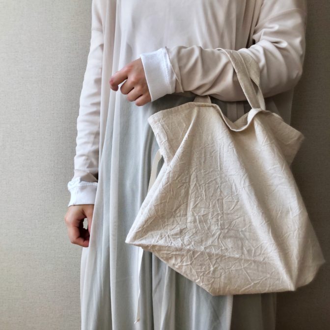 畳むのが面倒じゃない、けどコンパクトに持ち歩ける。洗濯も気楽に、ラフに使える。そんなエコバッグです。