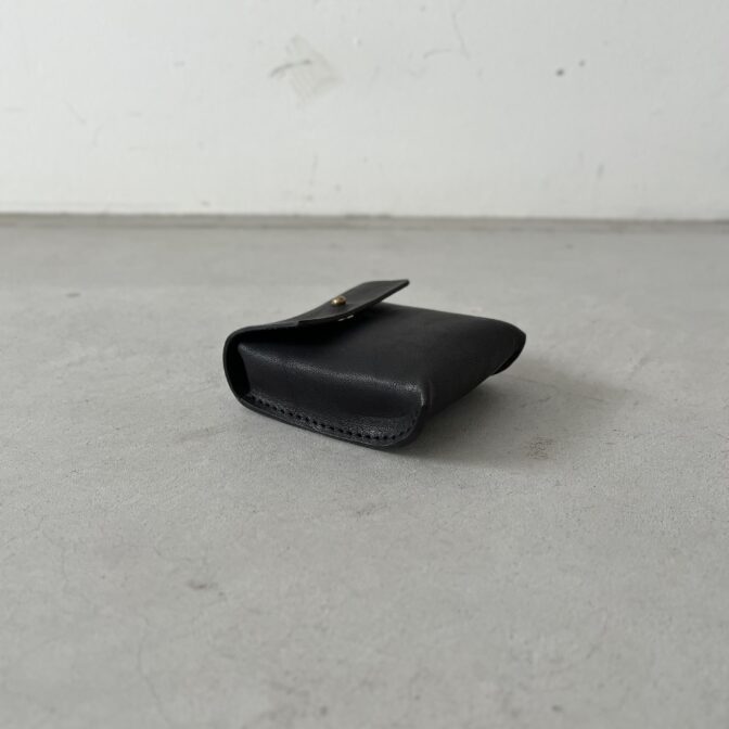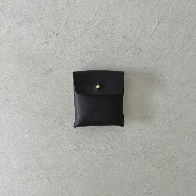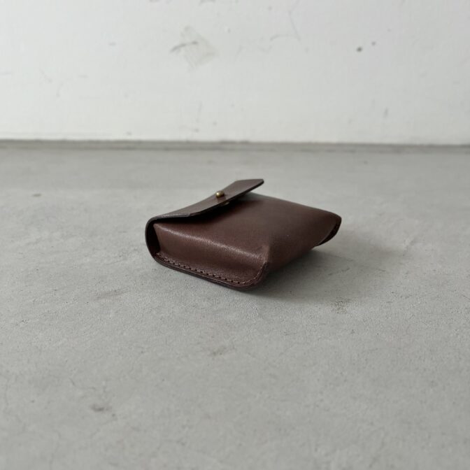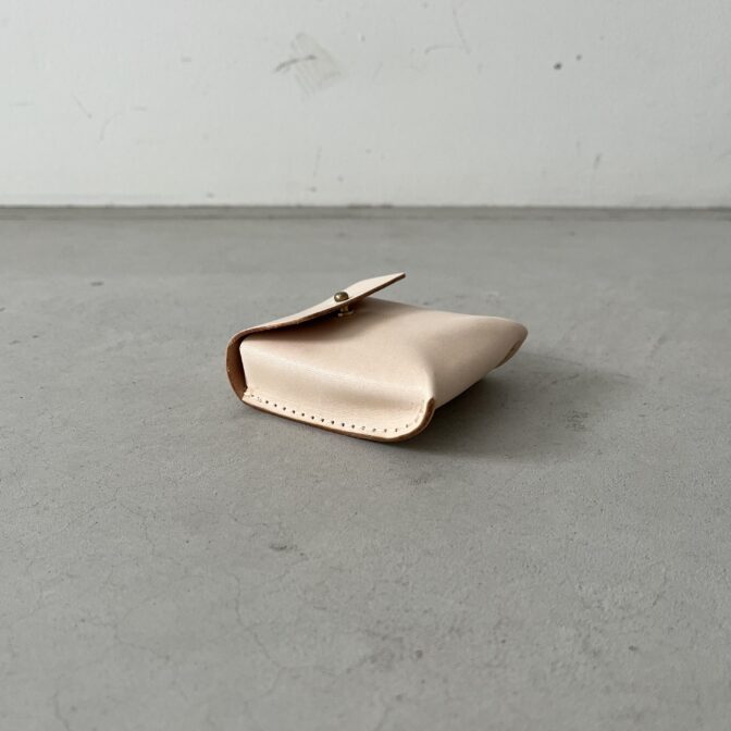 正面から直接ステッチが見えないプレーンなデザインが愛らしく、そのサイズ感にも愛着が湧くレザーコインケースです。
