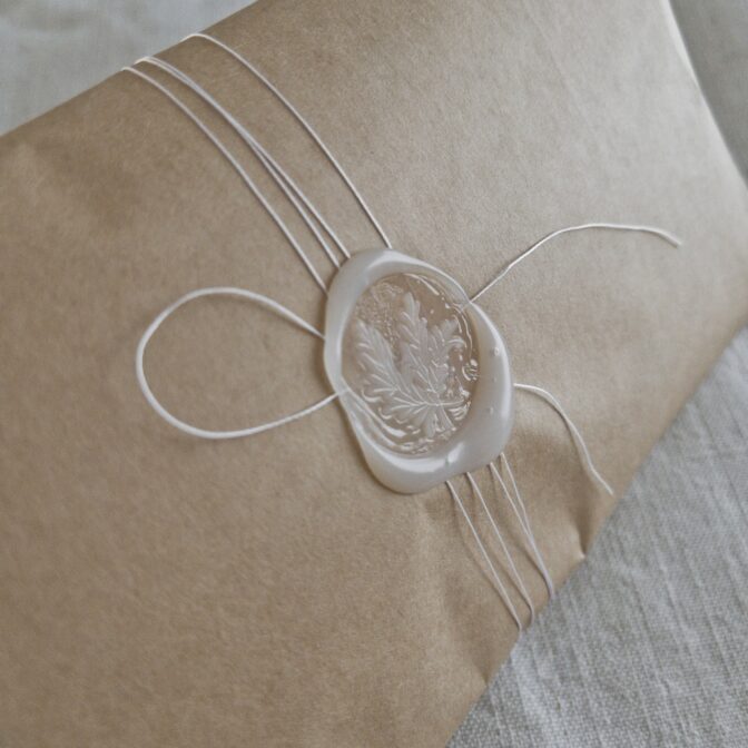 ポイントとなっている封蝋(シーリングスタンプ)は、一つひとつ手押しさせていただきます。