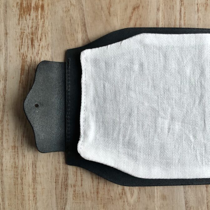 本皮マスク入れはどんな形のマスクでもたっぷり入る大きさなので重宝しそうです。また、インナーシートが2枚も付いているので洗い替えできるのはとても嬉しいです。