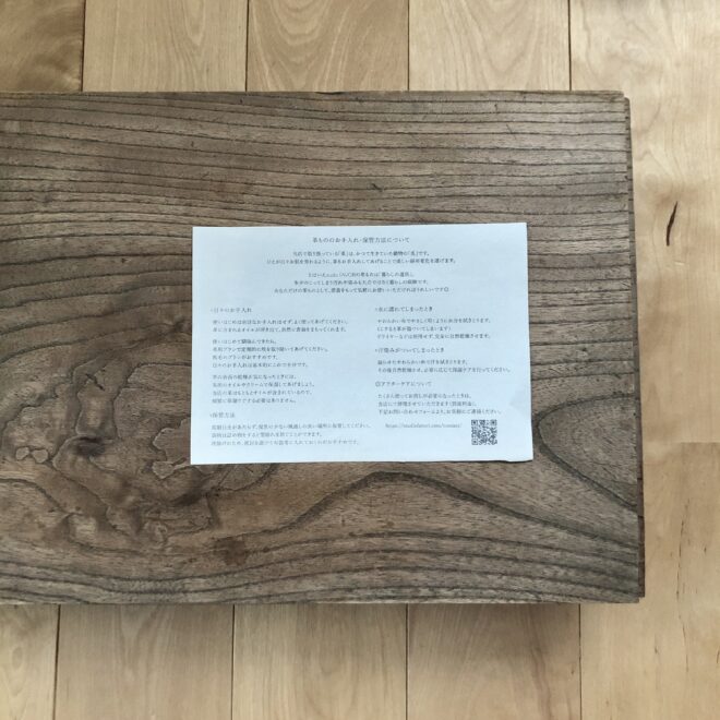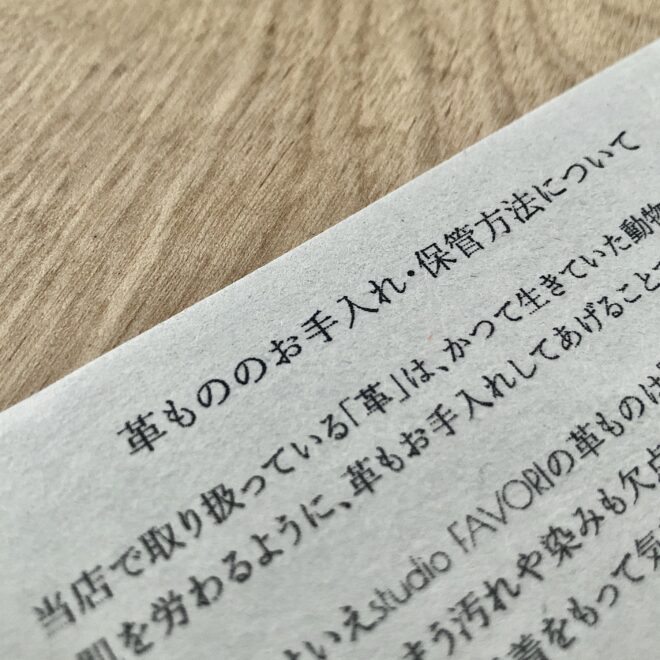このお手入れのしかたと、保管方法についてまとめた「革もの取扱説明書」を今後順次ご注文品に同梱してお届けしていく予定です。