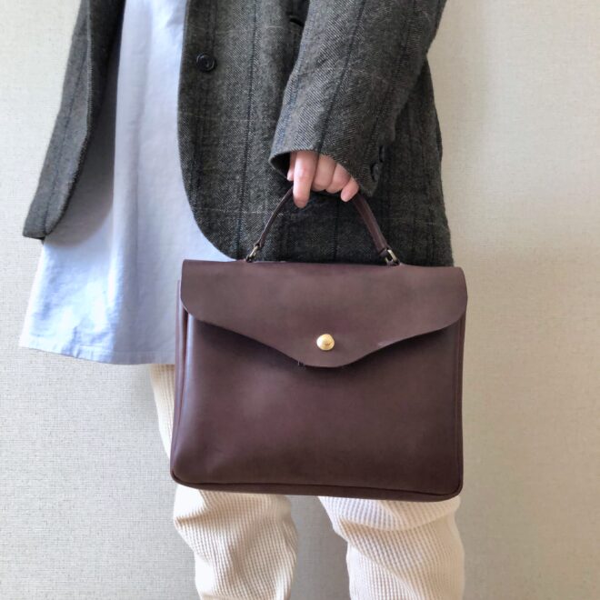 この鞄が出来てからいちばん最初に撮った着用画像。