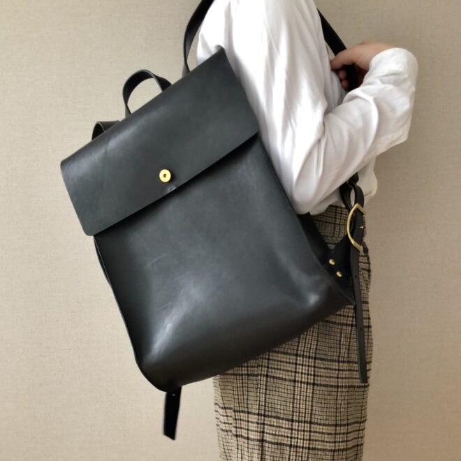 オーバーシルエットのお洋服に合わせれば、オールレザーのリュックも堅くなりすぎません。