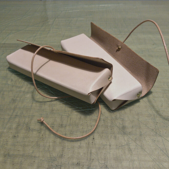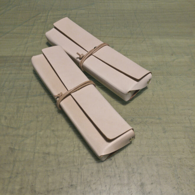 今回作るペンケースは当店の革小物のなかでも特に複雑な型で、裁断にもなかなか神経を使います。