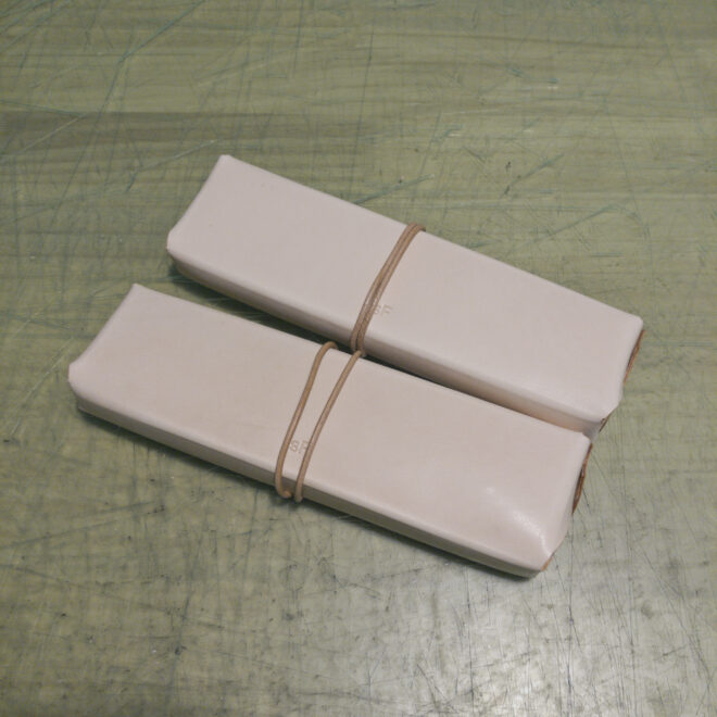床処理はするかしないかで作り手によって分かれるポイントですが、革の保護・耐久性の向上や見栄えの良さのため、当店ではすべての作品において床処理を施しています。
