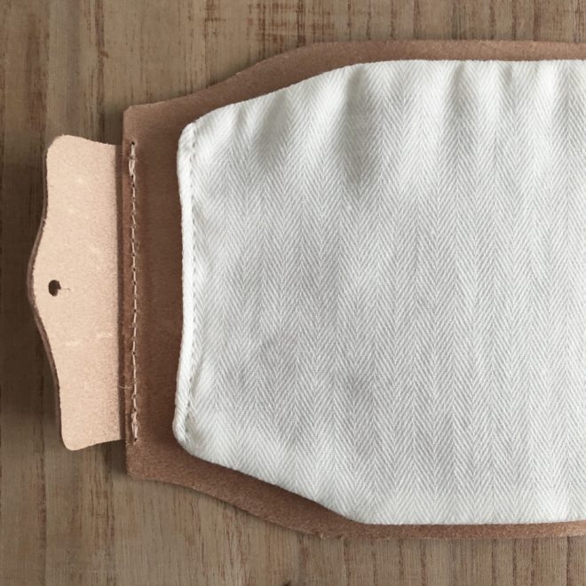 マスクを収納すると革自体の弾力も相まって、ふっくらとはらんだフォルムが愛らしいのです…
