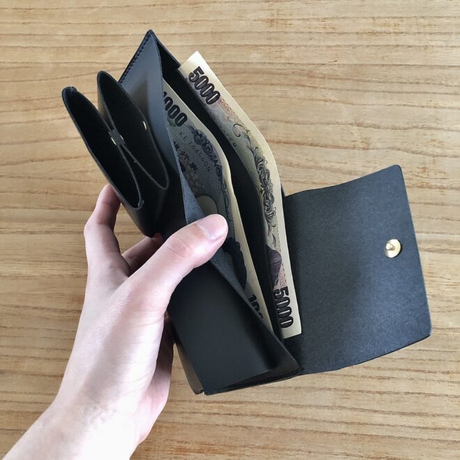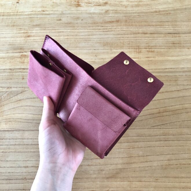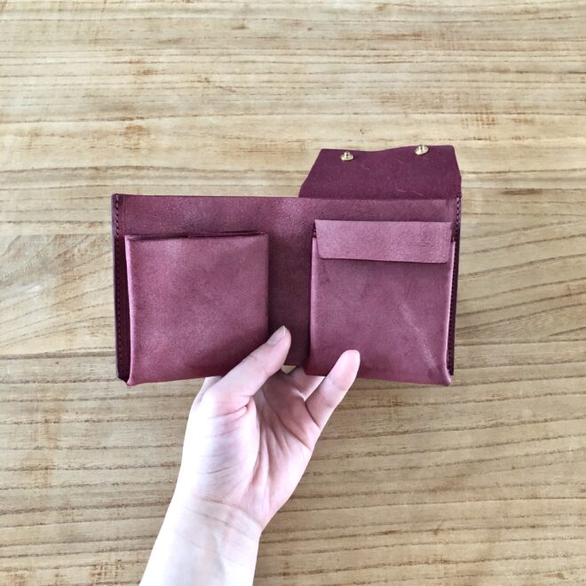 「横向きの二つ折り財布」は一度通常購入でしばらくお使いいただいて、気に入ってくださった方からリピートでセミオーダーのご相談を頂くことがあります。
