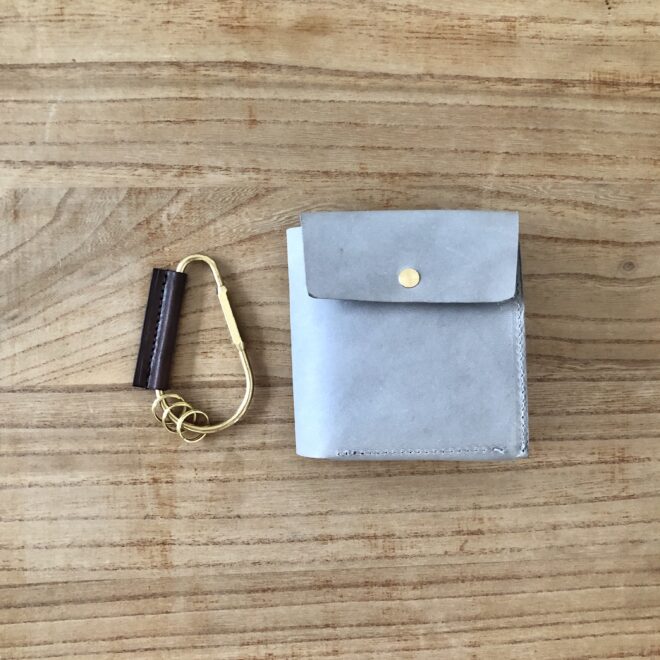 ご注文内容は二つ折り財布と合わせて、「真鍮引き立つキーリング(チョコ)」も一緒に、というものでした。