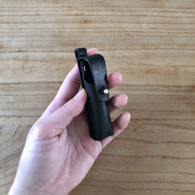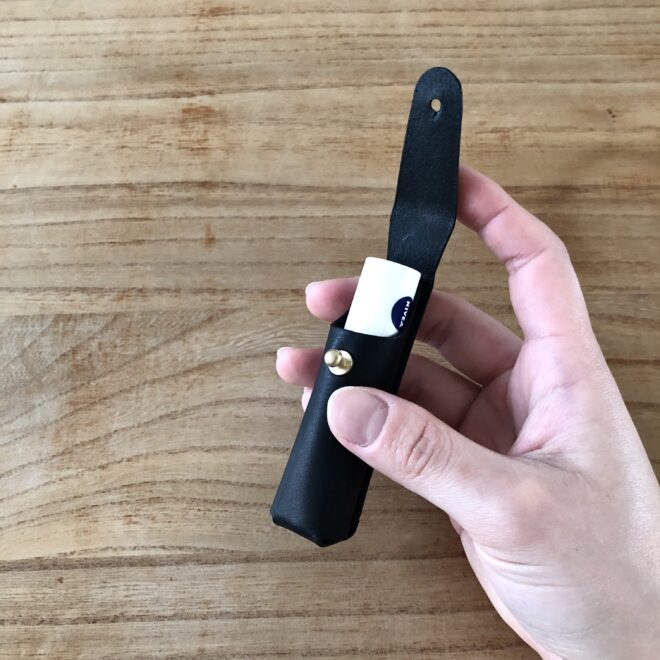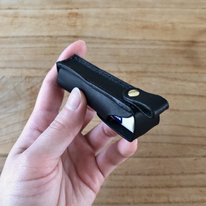 何かと失くしがちなリップクリームや印鑑(シャチハタ)を収納するのにぴったりな、贅沢な素材使いの専用ケース。