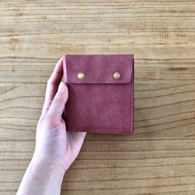 studio FAVORIが普段扱わない色目の革ですが、実はこの二つ折り財布のカスタムオーダーを受けた際に残っていたもの。