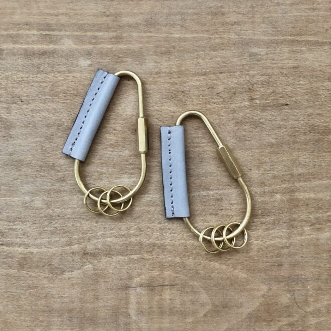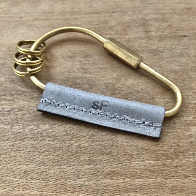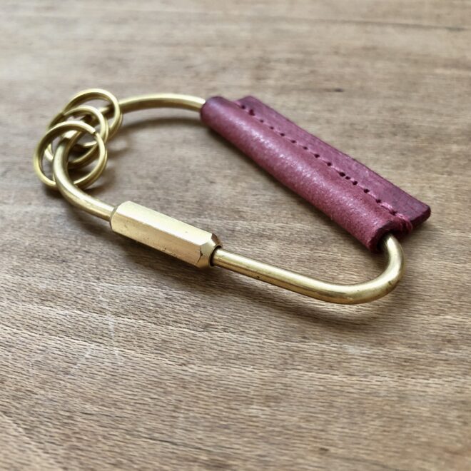 が、とにかくやってみようと思い立ったのが、すでに販売している「真鍮引き立つキーリング」の革タグに使うことだったのです。