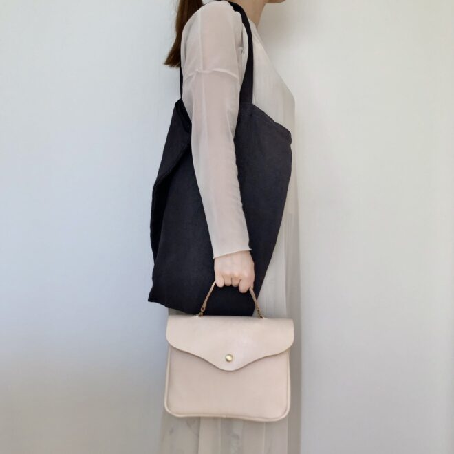 ハンドバッグはこれまでチョコから始まり、スミクロ、そしてキナリと一つずつ色展開を増やしてきました。