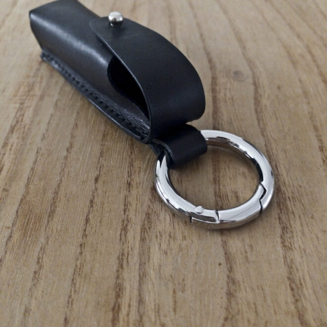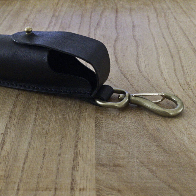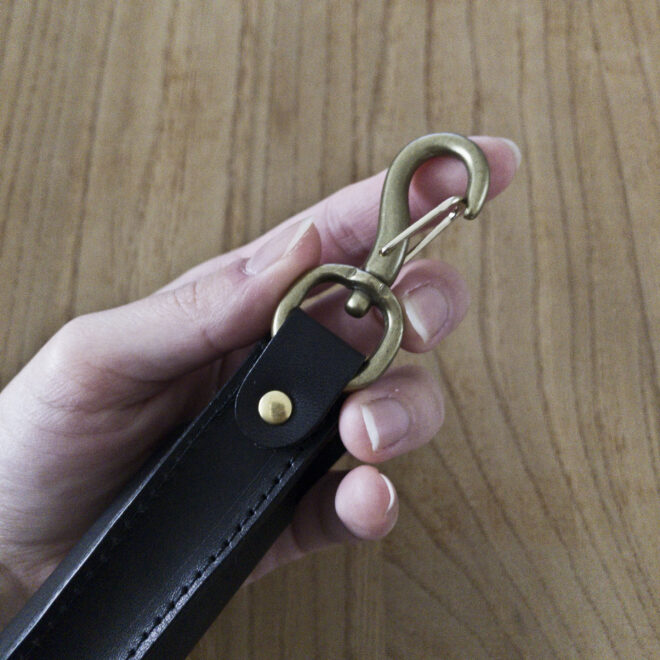 ナスカン、ギボシ、カシメと、小さなパーツまで揃えてモダンな佇まいに。