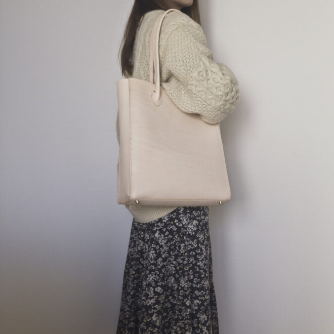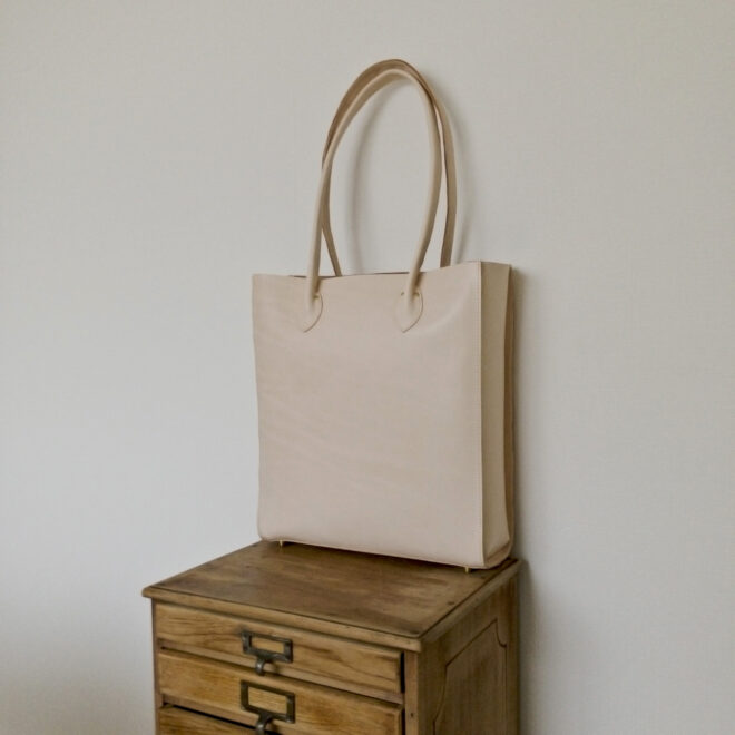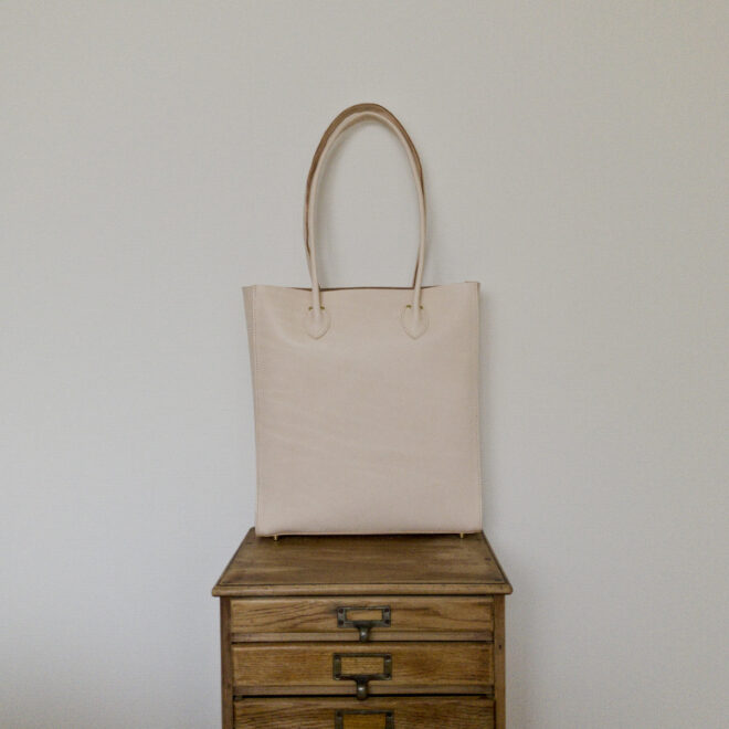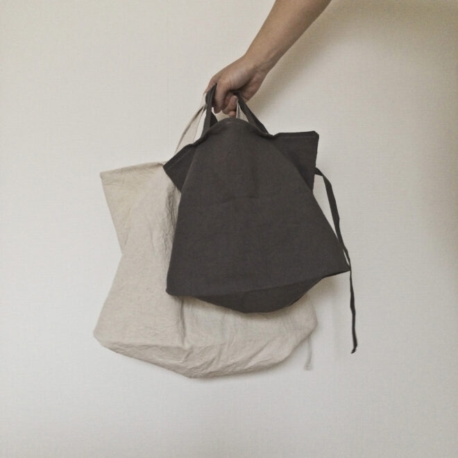 最初にご紹介したplain tote bagと同じく、ここでもハンドルを少しだけ長くしてお作りしました。