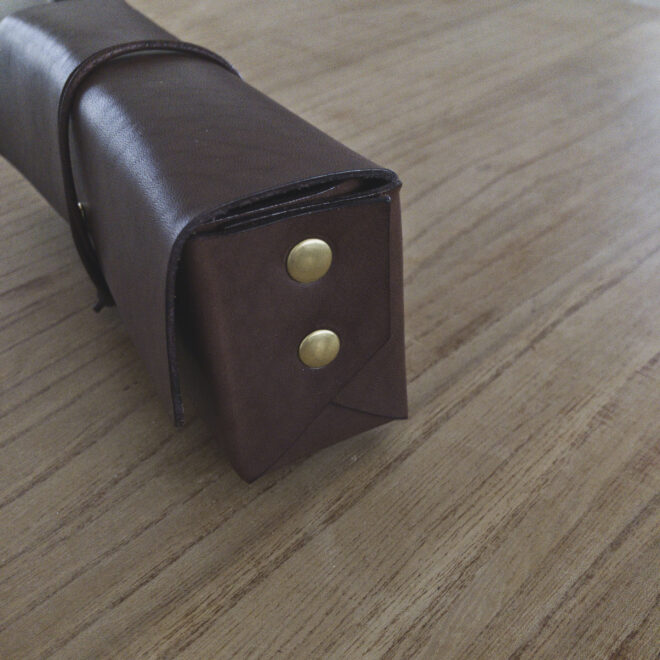 このときのオーダーではアウターを着ても肩掛けできる長さで、とご要望いただき、ゆとりをもたせた長さを一枚革で贅沢に制作しました。
