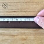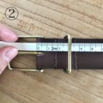 - バックルに巻いた革の折り山(端)を起点に、1で確認した穴までの長さを測ります