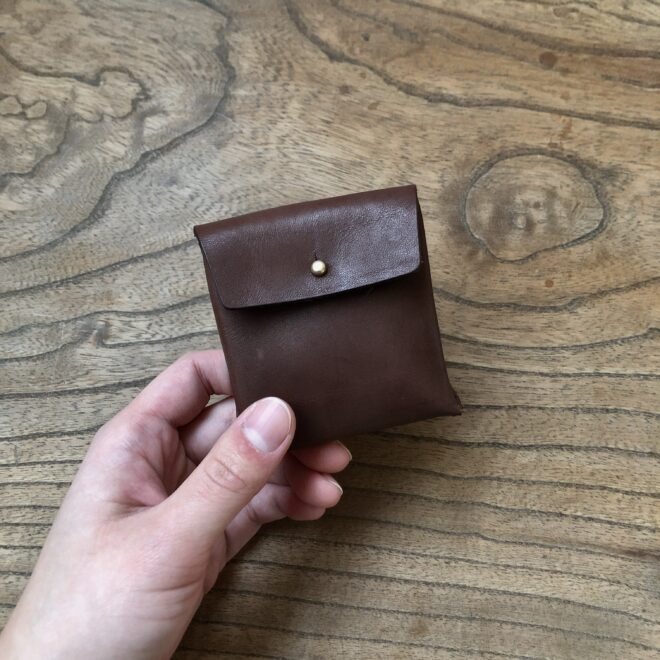 ひと部屋にフラップがついただけの、ミニマルなレザーケースができました。
