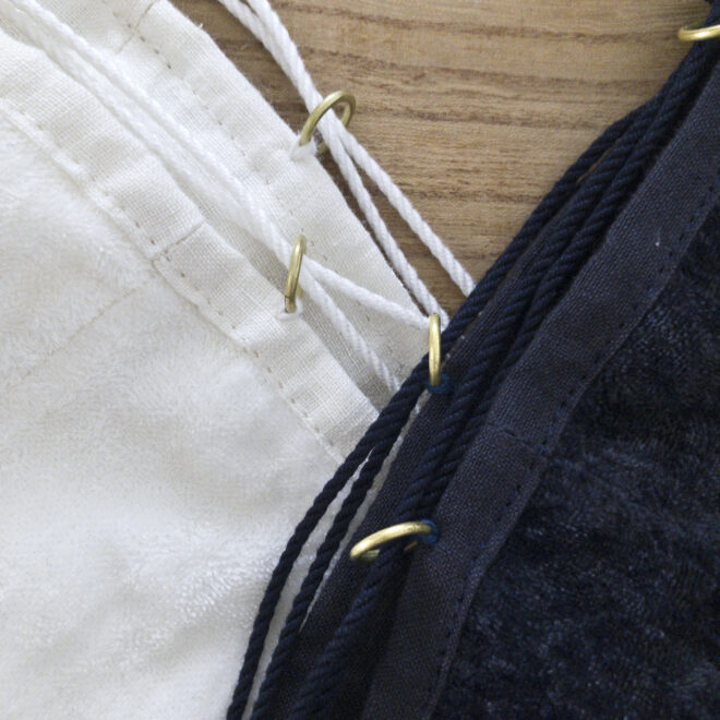裏地のリネン地でくるんだフチも、表地との異素材感が良いバランス。