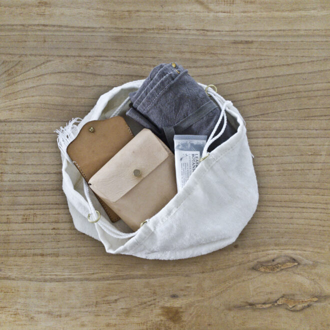 デザインソースはアンティークのドローストリングバッグ(Drawstring Bag)。
