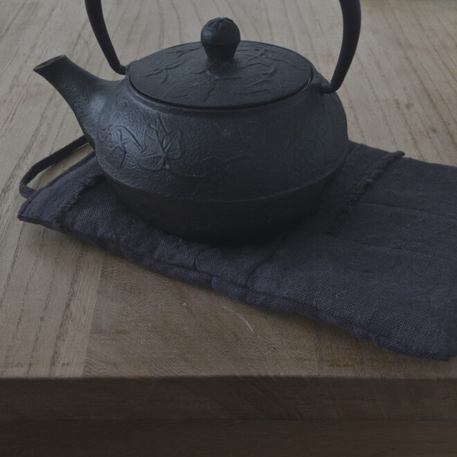 そんな美しい生地を大事に最後まで仕立てたい。そう思ってこの鍋つかみを作りました。