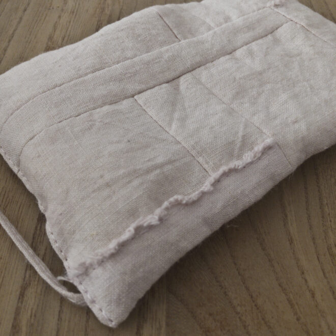 同色のリネンをはぎ合わせて、日常使いできる道具ができました。