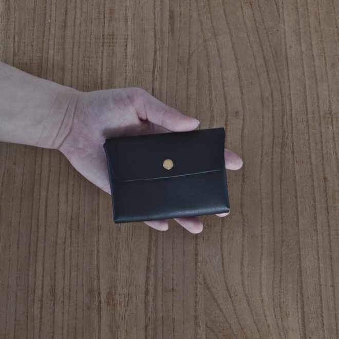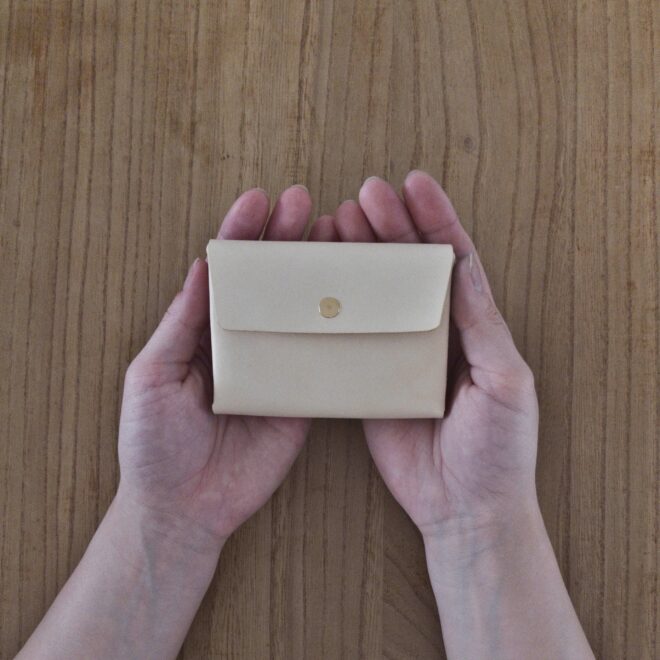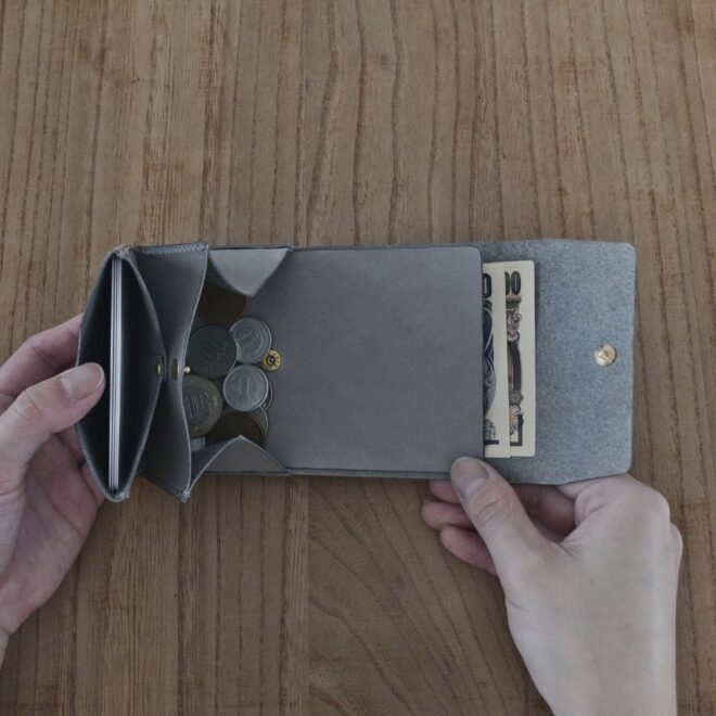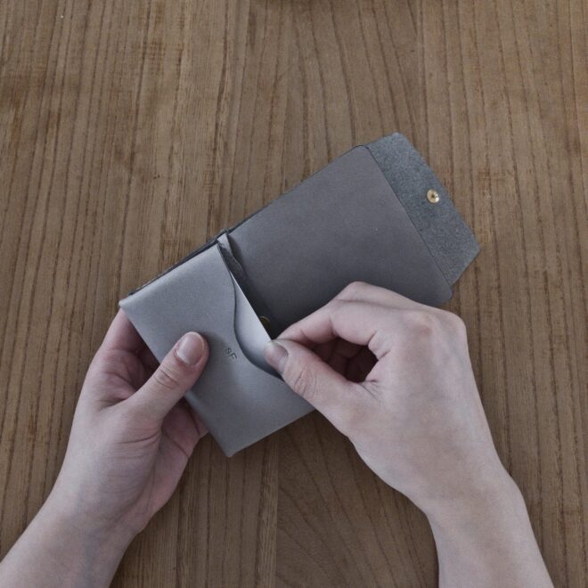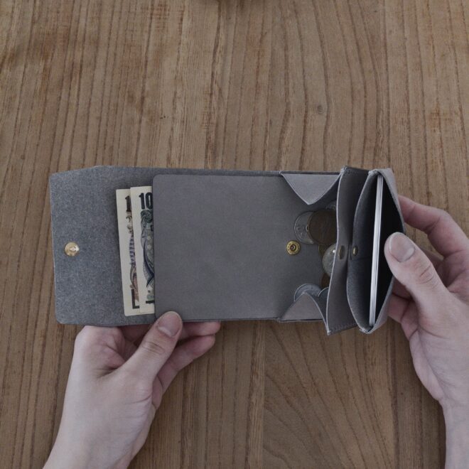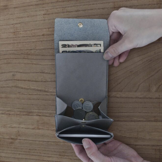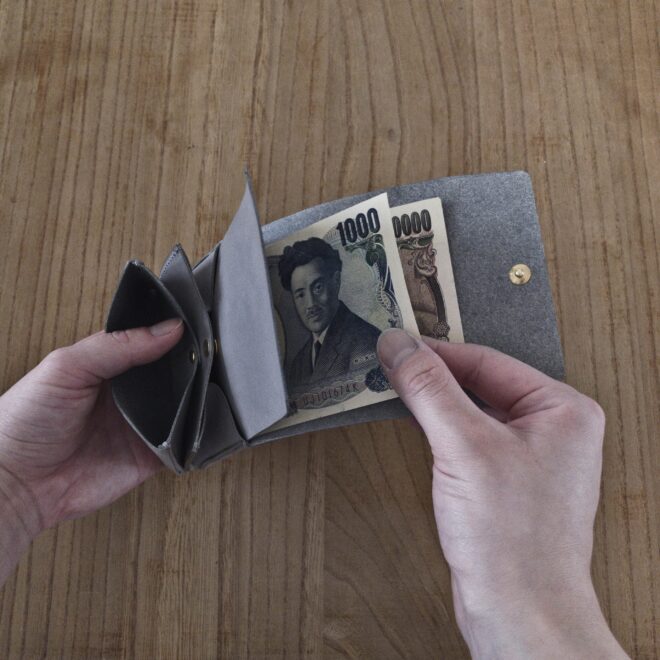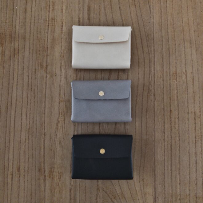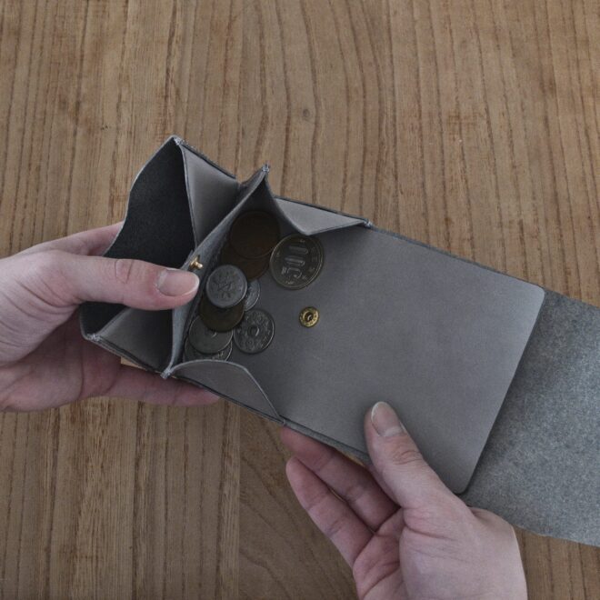 そんな気になるポイントを解消しつつ、折り財布として最小サイズとなることを目指して作ったのがシンメトリーな三つ折り財布。