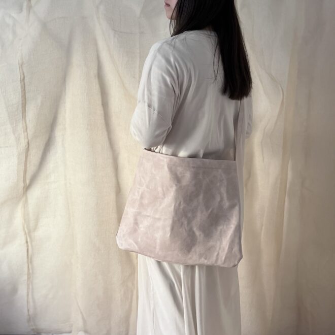 今回のflat one shoulder bagはそこから連れ出した鞄です。