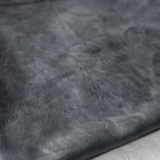 表面にワックス加工が施されているため、白っぽいムラ感が良い雰囲気です。このワックスは使うほど革に透明感を与えながら馴染んで、いつしかゆっくりと地の色が現れてきます。使い込み甲斐のある革です。