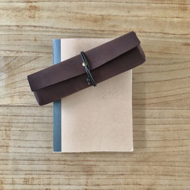 革紐のレザーペンケースは割とカジュアルな系統に寄りがちだったりしますが、このペンケースはミニマルで上品な印象。
